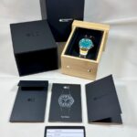 Never worn or sized, just admired sitting in its box and tried on the wrist a few times. Shipping is included within continental USA, payment through Zelle, Venmo or Paypal F&F from balance or bank account. Please add $30 for Paypal credit card and G&S. I can ship to Canada for an additional charge. Price of US$ 1,000 is firm and slight less than what I paid. I am also covering insured shipping.