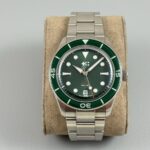 Bracelet: Some wear on the back side of the bracelet from desk diving. One small mark on the front near the case. All links included, should fit about 8″ wrist.